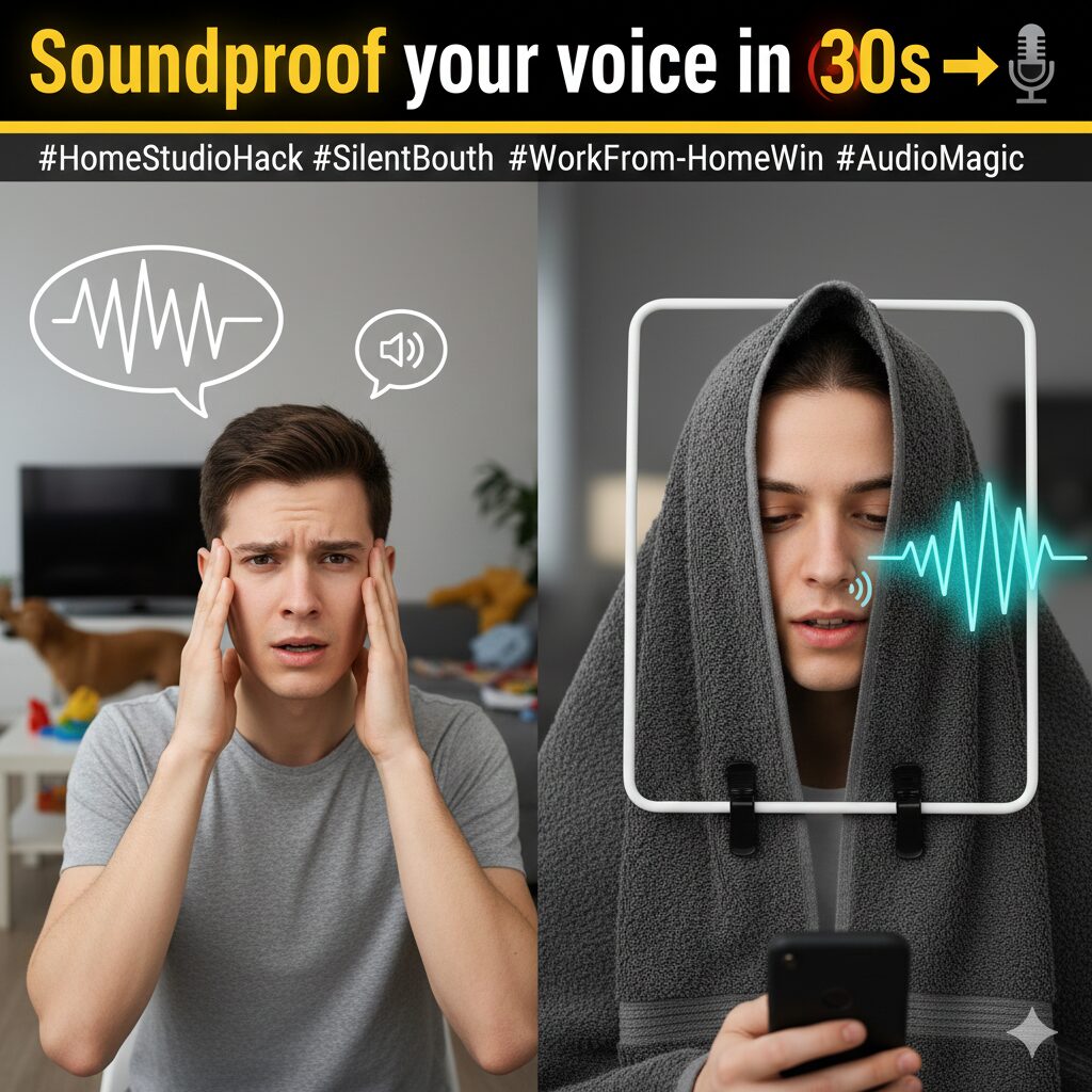 Hashtags: #HomeStudioHack #SilentBooth #WorkFromHomeWin #AudioMagic