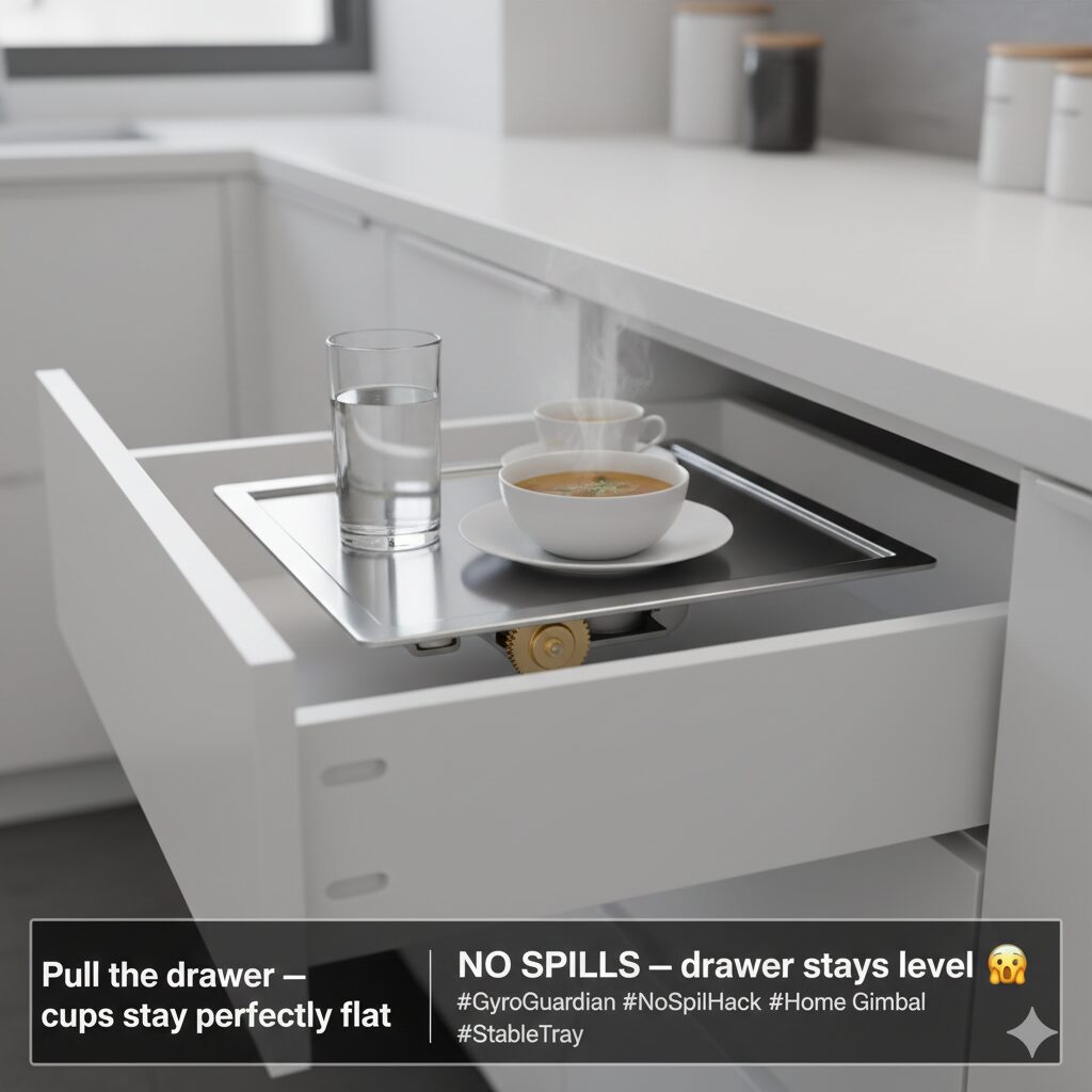 2) Gyro-Guardian Self-Leveling Tray — “Pull the drawer — cups stay perfectly flat”