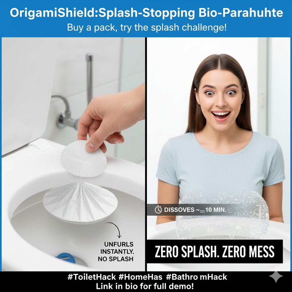 Why it’s mind-blowing: people think splash is just “part of the toilet.” This tiny disposable sheet literally changes the physics of an instant event — dramatic visual and tactile payoff, perfect for kids/parents and germ anxiety audiences.