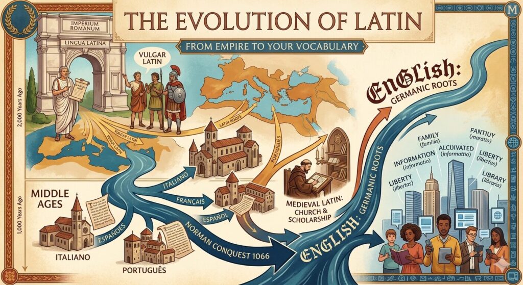 Latin didn’t die; it simply transformed. It moved from the streets of Rome into the dictionary of every English speaker. Next time you use the word “family,” “information,” or “library,” remember—you’re speaking a bit of Roman history.