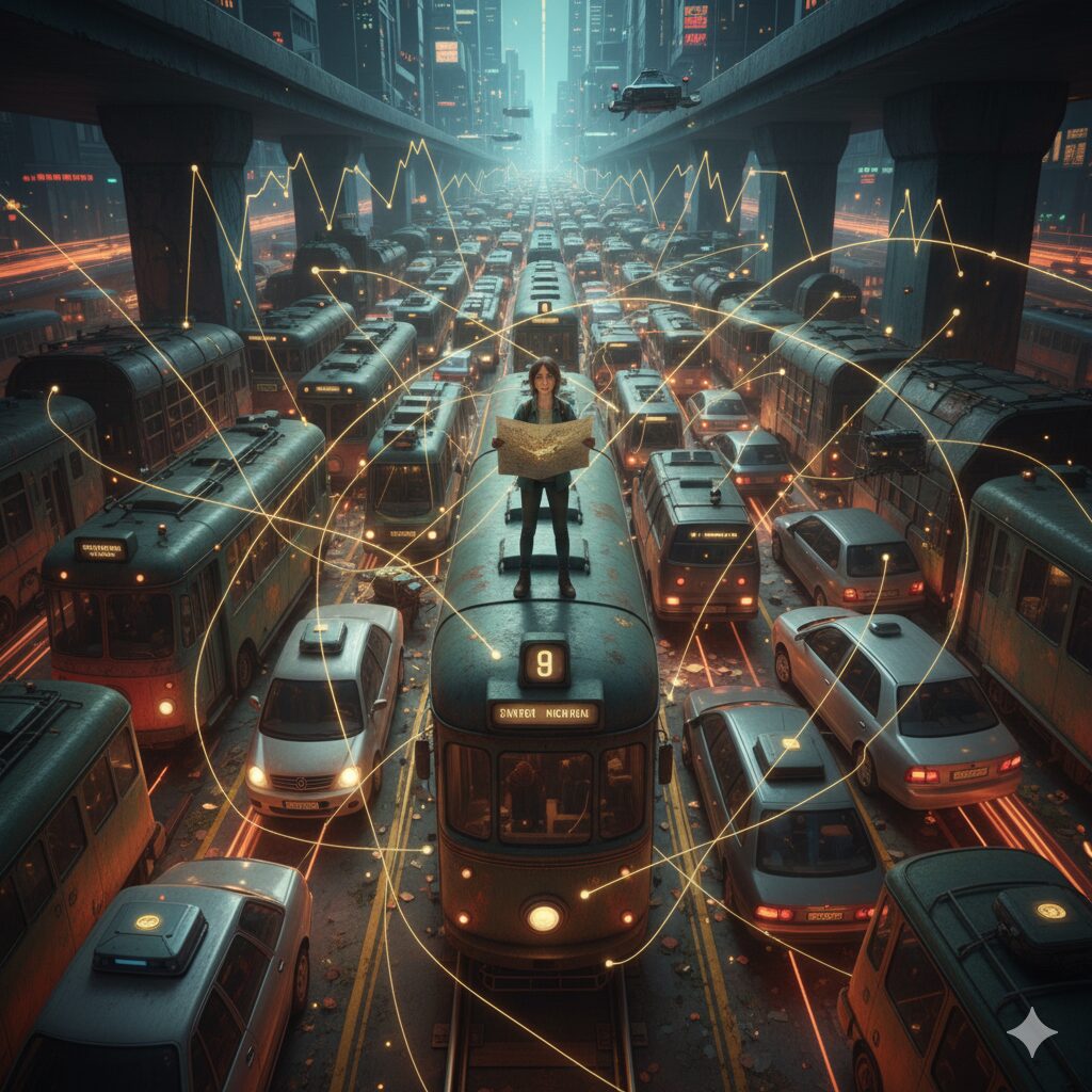 They called it the Arterial — a sleeping city of rails and ribbons, veins and bridges, where every vehicle breathed and every route hummed like a living thing. People treated it like plumbing: tap a screen, wait for a beep, arrive. But nobody in the bright towers above had ever walked the Arterial from the inside. Nobody, that is, except Mira.